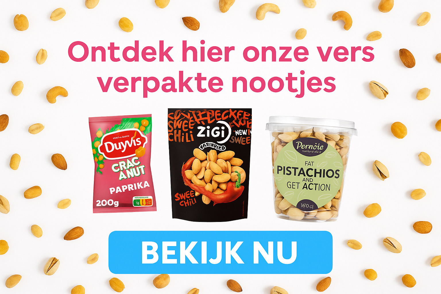Ja, onze nootjes zijn absoluut vers verpakt – en dat begint al bij de bron. Bij Snoepman werken we alleen met zorgvuldig geselecteerde, betrouwbare leveranciers die hun noten vers roosteren in kleine batches. Zodra de pinda’s, cashews of mixen uit de oven komen, worden ze na afkoeling meteen luchtdicht verpakt. Door die snelle schakeling tussen roosteren en verpakken blijven smaak, aroma en krokantheid maximaal bewaard. Je proeft dus echt nog die typische “vers geroosterde” bite wanneer je een zak Duyvis, Zigi of Pernoix opent.