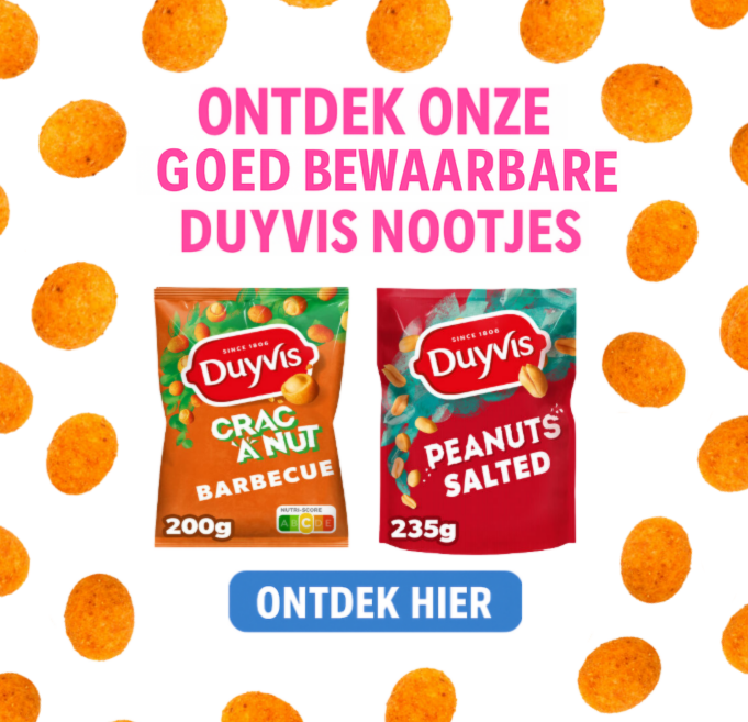 De knapperigheid van Duyvis nootjes blijft het best behouden wanneer je ze bewaart op een droge, koele plaats en zorgt dat ze beschermd blijven tegen luchtvochtigheid. Varianten zoals Gezouten Nootjes blijven van nature iets stabieler, terwijl de gecoate Barbecue Nootjes sneller zachter worden als de zak open blijft. Daarom is een goede afsluiting essentieel om de originele bite te behouden.
