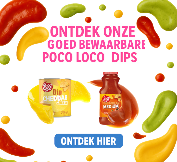 Poco Loco dips hebben een lange houdbaarheid zolang ze ongeopend zijn en op kamertemperatuur worden bewaard. Een ongeopende pot Nacho Cheese, Cheddar Cheese, Salsa of Guacamole blijft doorgaans meerdere maanden goed in de voorraadkast.