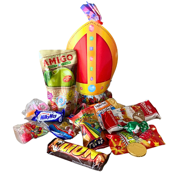 De de leukste tijd van het jaar met onze gevulde snoepzak Sinterklaas! Deze vrolijke snoepzak zit boordevol lekkernijen en bevat maar liefst 13 verschillende stukken snoep die zorgen voor een glimlacht op elk gezicht.