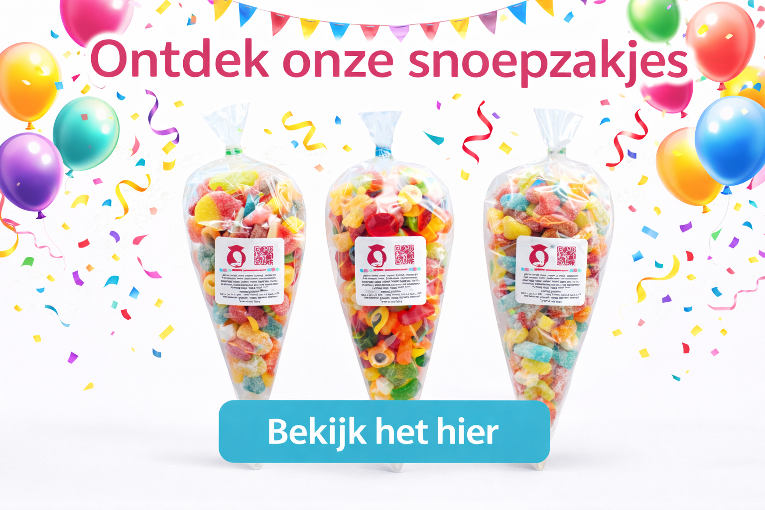 Onze snoepzakjes bevatten meestal een mix van zachte gummies, zuurtjes, lolly’s, spekken en kleine chocolaatjes. Door te werken met bekende merken blijven ze aantrekkelijk voor zowel kinderen als ouders.