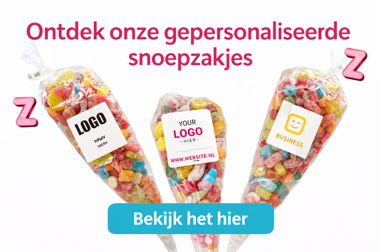 Gepersonaliseerde snoepzakjes vanaf 250 stuks, schaalbaar tot grote volumes