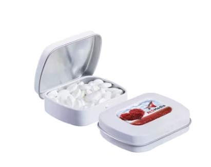 Gepersonaliseerd klein scharnierblik pepermunt bedrukking | Relatiegeschenk snoep