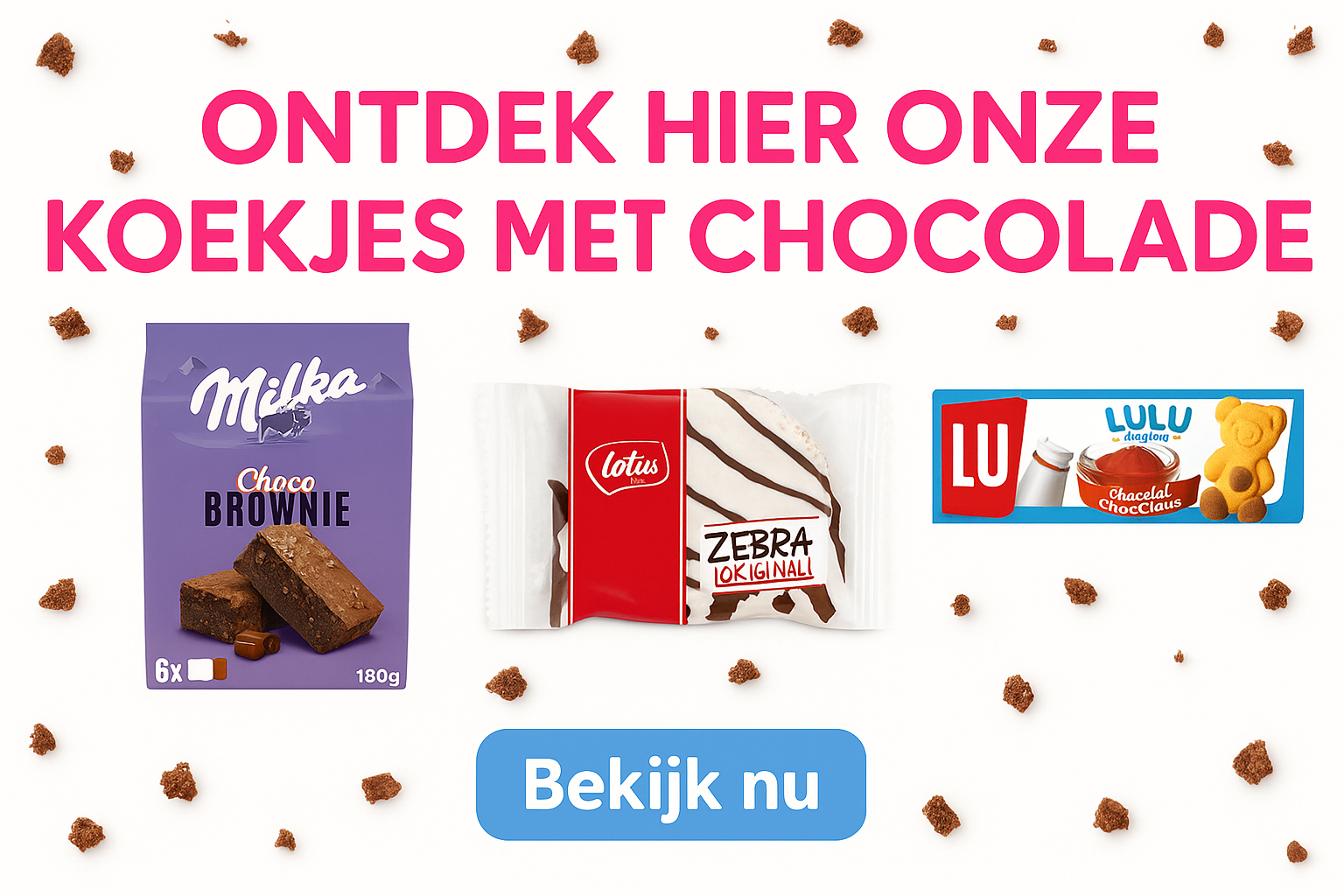 Zin in heerlijke, krokante koekjes met echte chocolade? Ontdek ons assortiment, kies jouw favoriete soorten en laat ze snel leveren bij je thuis of op kantoor. Bestel vandaag nog en geniet binnenkort van pure chocoladetrakteer-momenten.