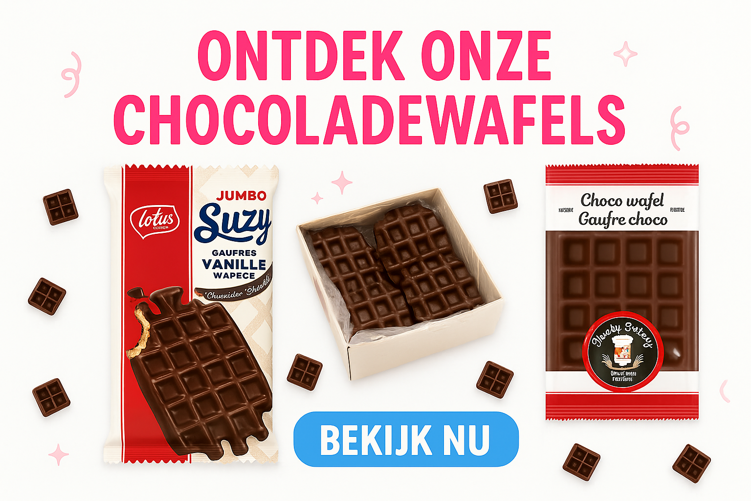 Kies je favoriete chocoladewafels uit ons assortiment.