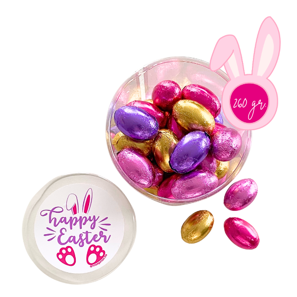 Pasen is het moment om de zon weer in huis (of op kantoor) te halen! Dus ben jij op zoek naar de ultieme manier om je waardering te tonen? Onze luxe transparante tubo, gevulde met 260 gram aan zijdezachte Callebaut paaseitjes, is de absolute favoriet als het gaat om paasgeschenken bedrijven. Het mooiste van alles? Hoewel we deze kokers met een zakelijke precisie en uitstraling hebben ontworpen, kan werkelijk iedereen, van grote multinational tot de buurvrouw die haar familie wil verrassen.
